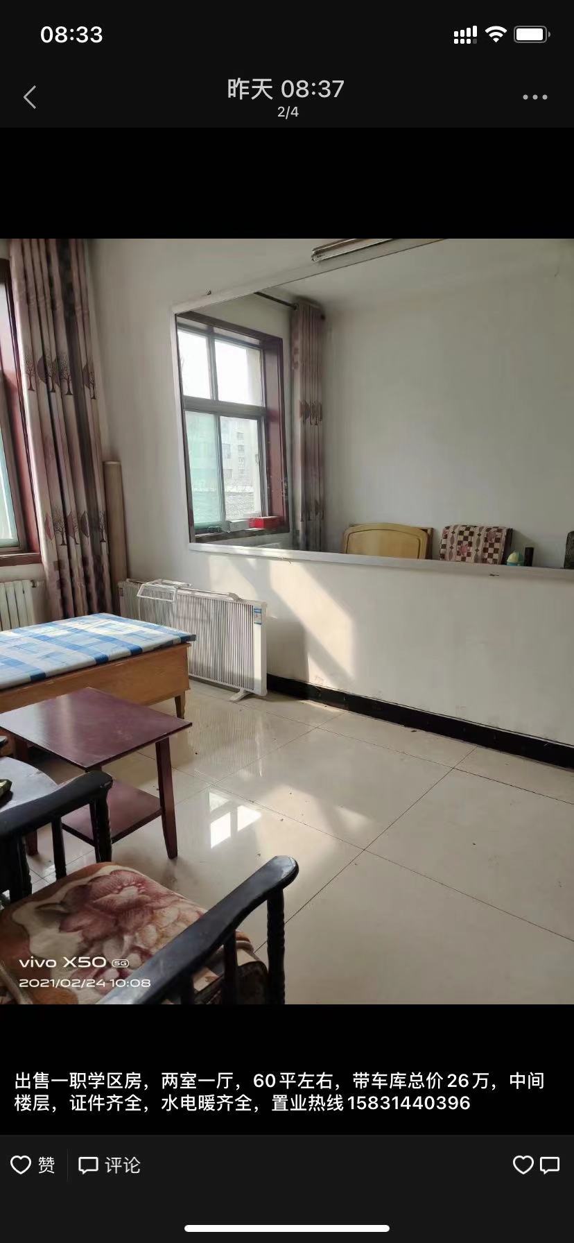 -> 出售一职学区房,两室一厅,60平左右,带车库总价26万